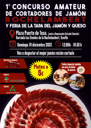 Este domingo 14 de diciembre, Rochelambert tiene planazo gastronómico. La Plaza Puerto de Tosa será el escenario del 1º Concurso Amateur de Cortadores de Jamón Rochelambert, un evento único para disfrutar del arte, el talento y el sabor de un producto que forma parte de nuestra cultura.